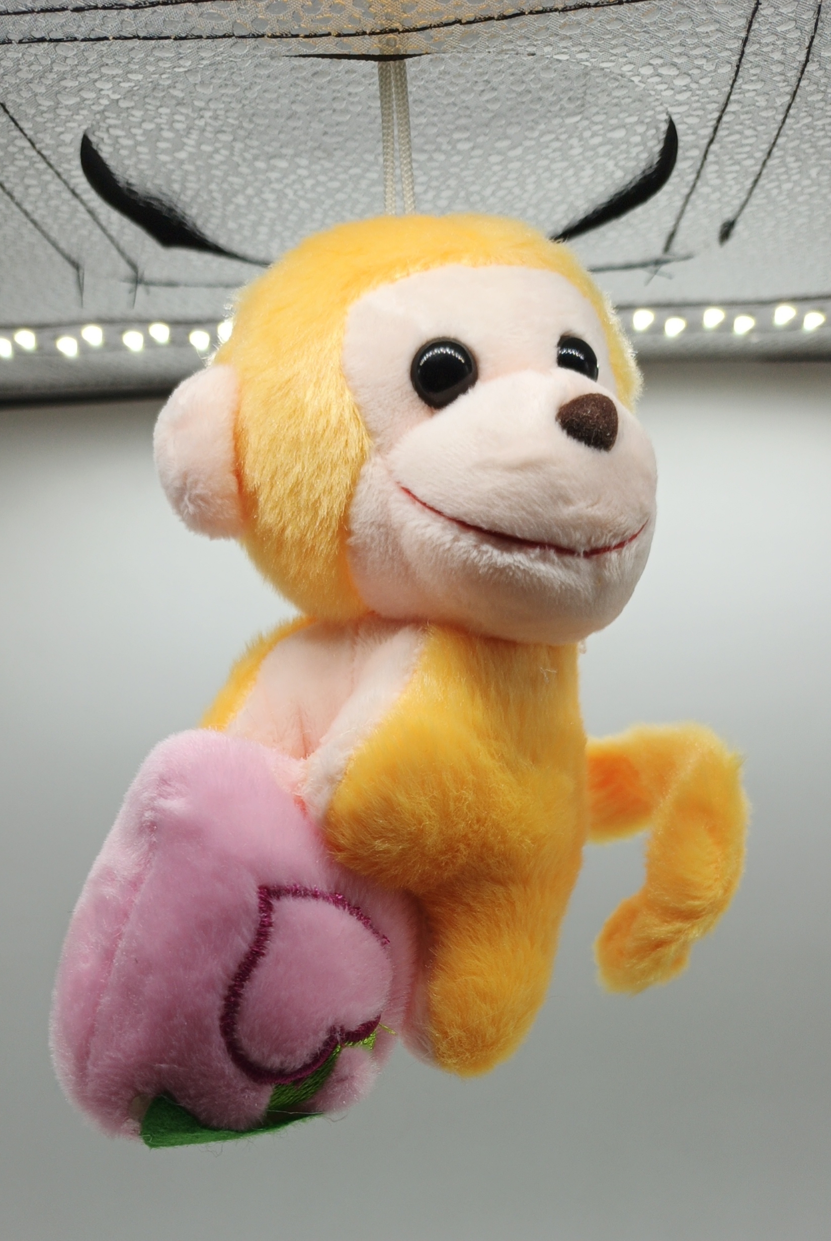 Брелок в виде обезьянки с фруктами разного цвета.